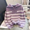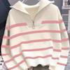 Autumn Winter Stand Color Vintage Striped Patchwork Pullover Sweater Women Loose Casual All-match Knitting Top
