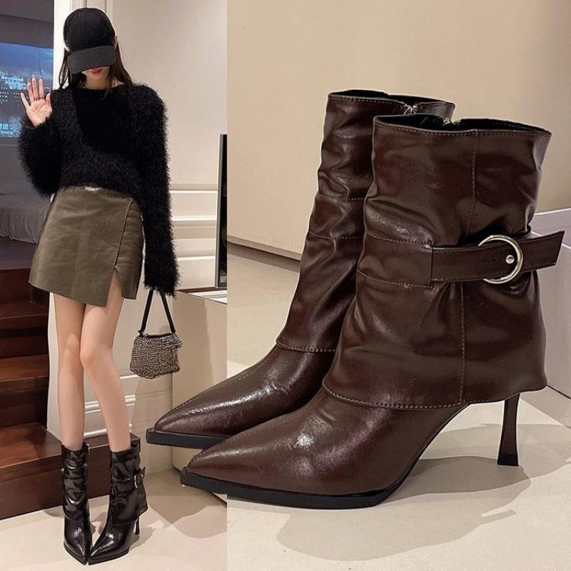 Vintage Pointed-toe High-heeled Ankle Boots, Women's Shoes