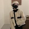 Retro temperament loose contrasting color round neck thickened lamb wool autumn and winter thickened wool imitation fur coat women