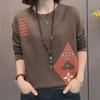 Svetr s volným střihem, květinovým žakárovým vzorem a kulatým výstřihem pro ženy, podzimní zimní etnický pletený top