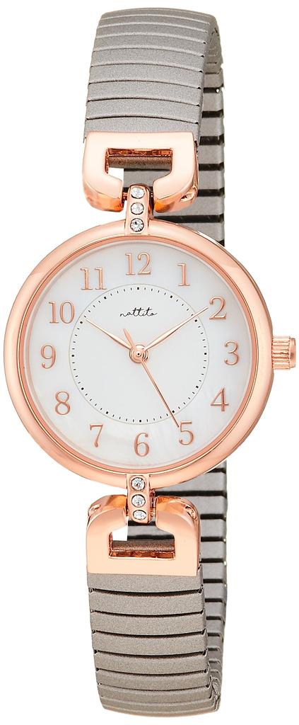 Fieldwork Women's Analog Watch with Accordion Pattern, Metal Band, Pink Gold, Gray, YM068-4