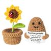 2PCS Positive Mini Sunflower Pot Potato Handicrafts Creative Funny Knitted Flower Crafts Desk Decoration Crochet Birthday Gifts