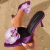 Fashion Elegant Flowers Decorated Brand High Heeled Sandals Women Fashion Pointed Toe Thin Heel Slide Sandals Luxury Banquet Dress Shoes