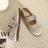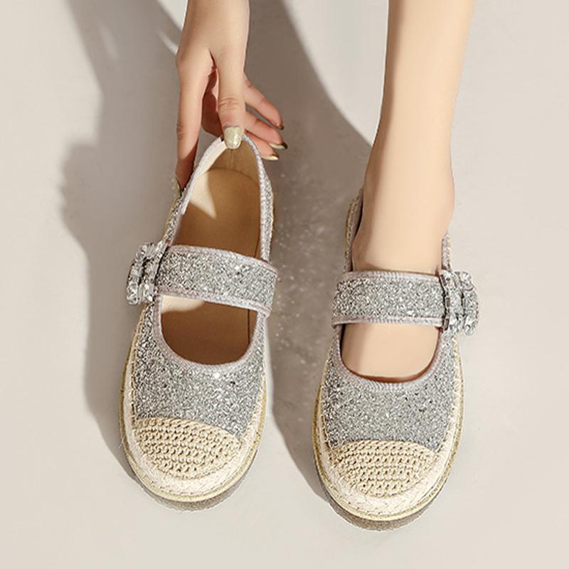 Fashion Silver Glitter Sequins Espadrilles Shoes Woman Fisherman Loafers Rhinestone Buckle Belt Flats Moccasines Ladies Hemp Mary Janes