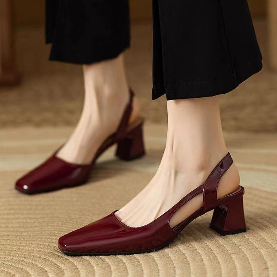 Fashion square toe high heels sandals women japanned leather slingback summer shoes ladies party shoes sandalias de mujer verano 2025