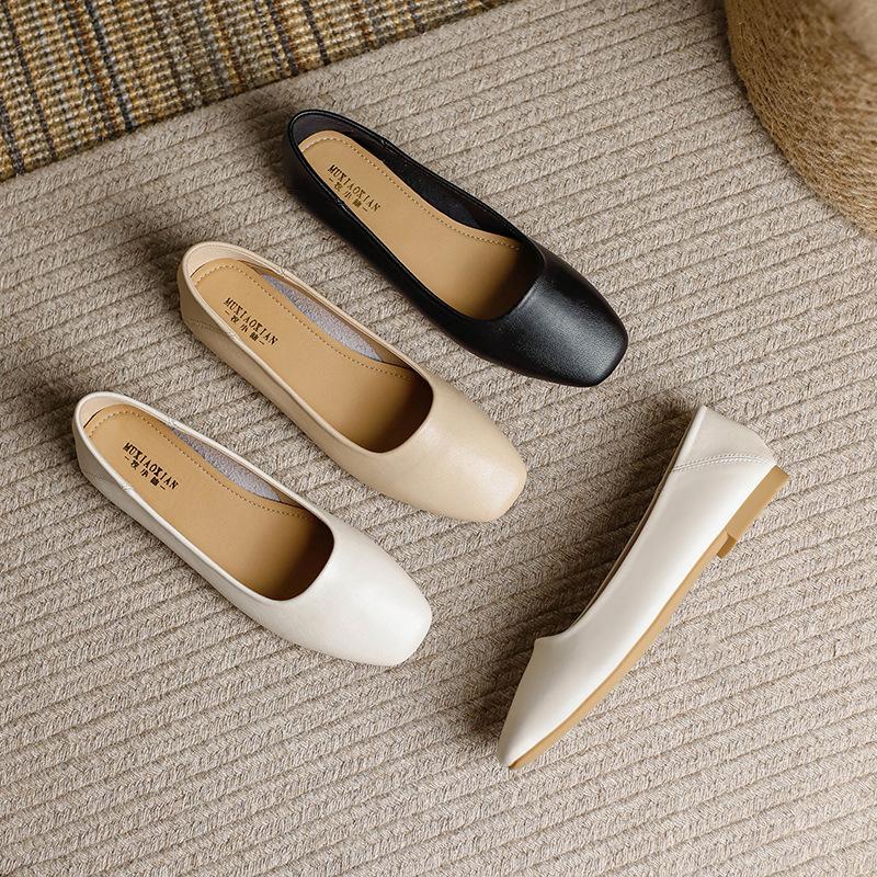 Fashion square toe soft leather flats women brief design slip on loafers female working shoes flat heel ballerina shoes plus size 43