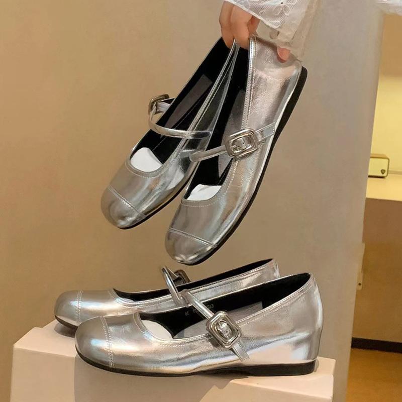 Fashion Silver Wedges High Increase Mary Janes Woman Belt Buckle Shoes Flats Elevated Ballets Ladies Lolita Loafers Party Bridal Shoes