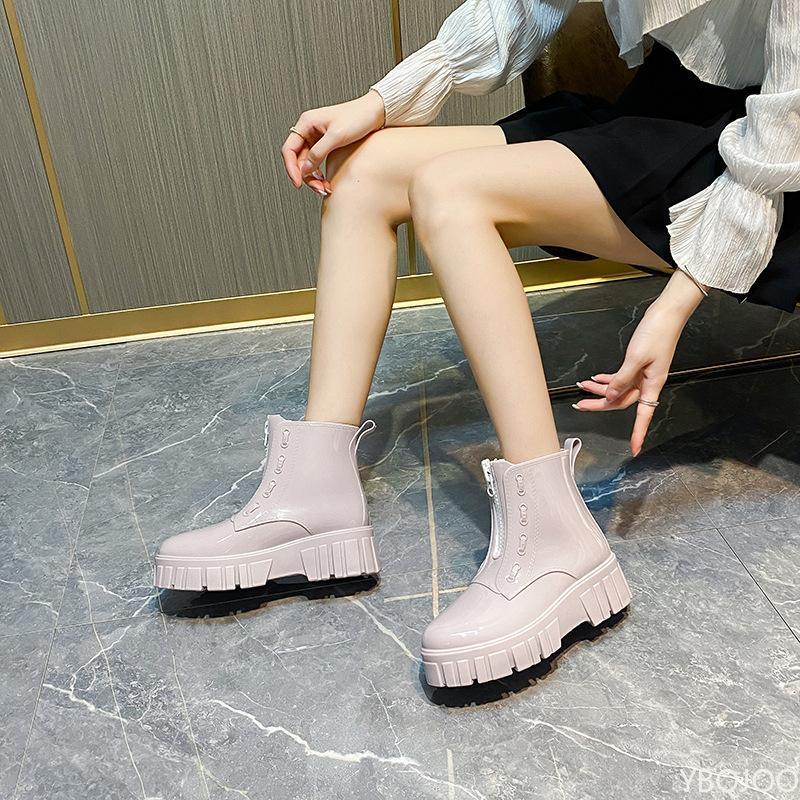 Fashion Fashionable versatile new rain boots women short shoes waterproof anti slip thick sole height increasing women rain boots