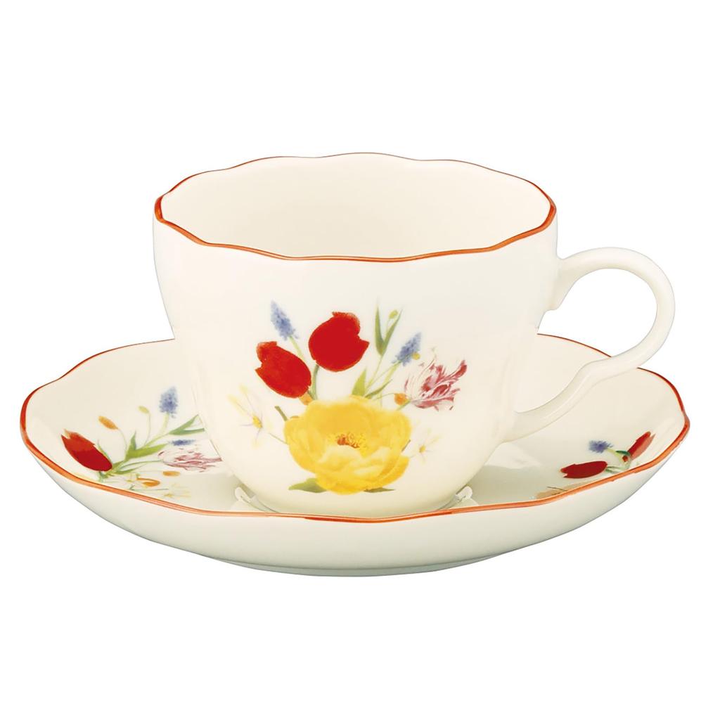 Yamaka Shoten x HIBIYA-KADAN [Flower Language Tulip] Teacup & Saucer, 230ml, Diameter Approx. 9 x 7cm, by Hibiya Kadan FLORIOGRAPHY. A perfect