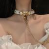 Clavicle Choker Leash, PU Collar Adult Cosplay Prop, Adjustable Length Punk Style Bell Collar