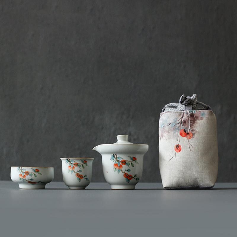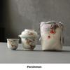 Ceramic Tea Set Chinese Style One Pot Three Cups Office Outdoor Convenience Storage Bag Travel Picnic Tea Set Decor Simple