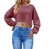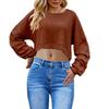 HNXC Autumn and Winter Women's Wear Is A Brushed Pit Striped Knitted Crop Top with Long Sleeves and Short T-shirts