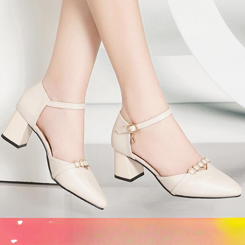 Soft cowhide high-heeled sandals women's summer 2025 new bag head pointed head thick heel soft leather fashion women's shoes
