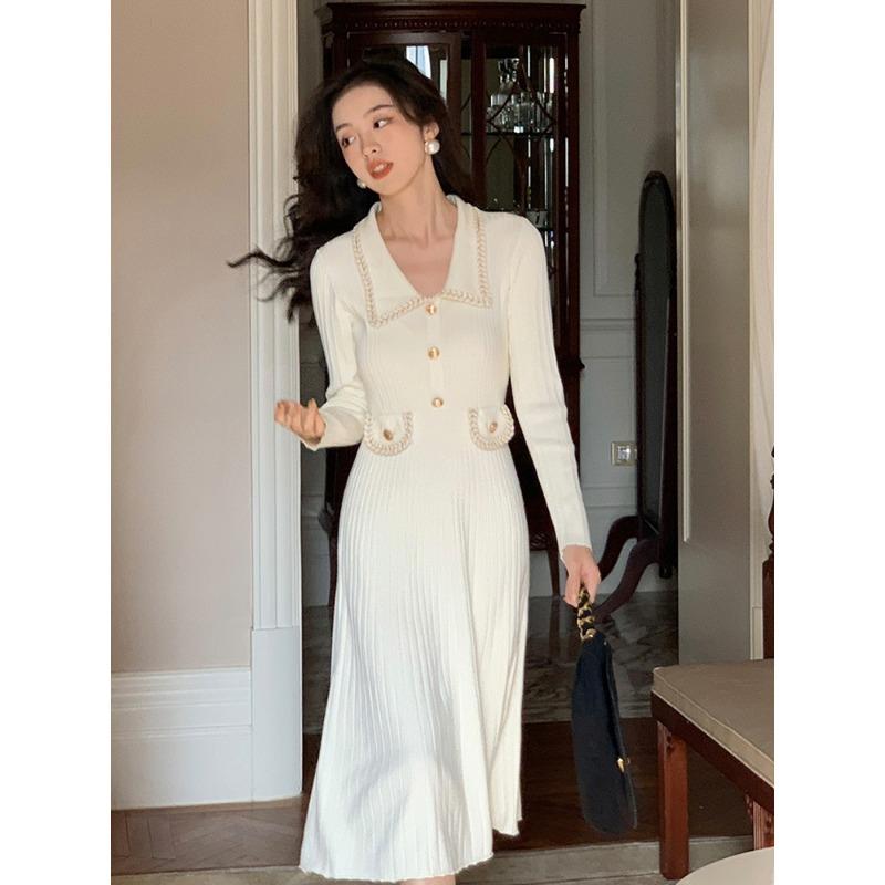 Rich family daughter red knitted dress has a new battle robe, high-end sense, with a coat and a long skirt inside.