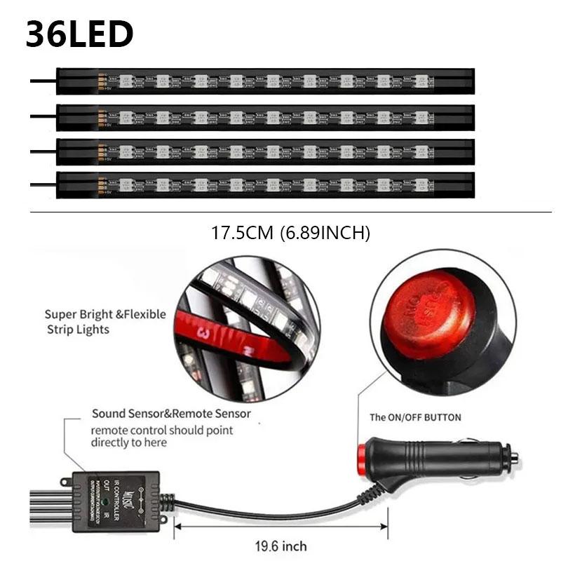 Neon 36LED Car Interior Ambient Foot Light Strip 4 in 1 with USB Wireless Remote Music APP Control Auto RGB Atmosphere Lamp