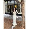 Skinny and tall long-sleeved hip-wrapped fishtail knitted skirt women's autumn new temperament gentle wind long dress