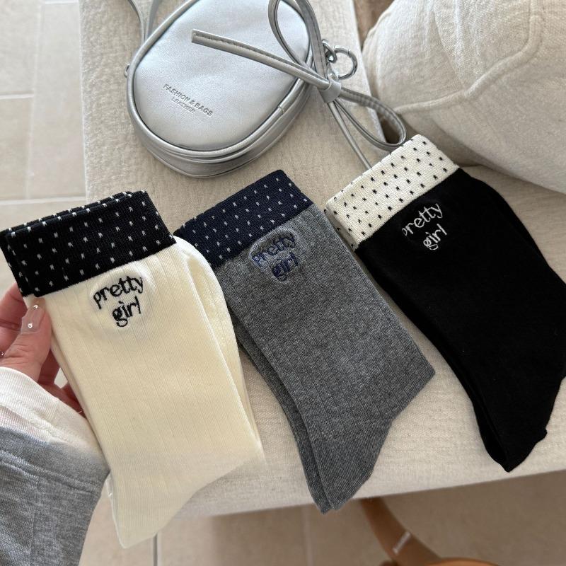 Women's New Autumn Embroidery Letter Matching Color Wave Dot Boneless Tube Socks
