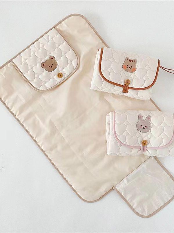 Korean Quilted Breathable Cotton Embroidered Newborn Waterproof Diaper Pad & Bag
