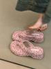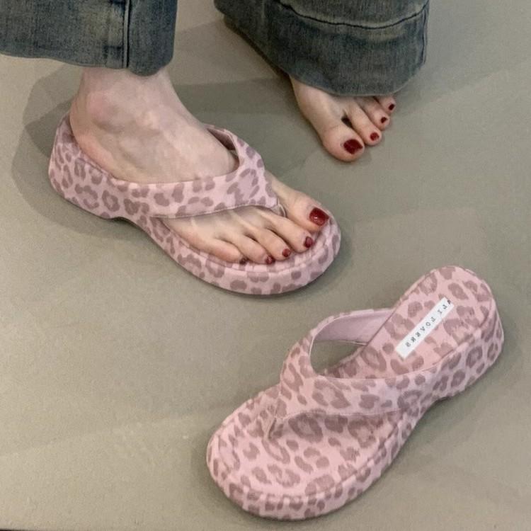 Soft leather version! Niche design pink leopard print flip-flops for women, thick-soled heightening beach sandals for spring and summer women