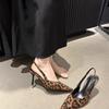 Móda s leopardím potiskem špičaté vysoké podpatky dámské letní nošení chladné pantofle 2025 nové francouzský temperament se sandály