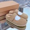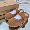 Cute retro fur integrated fluffy beanie shoes women wear warm and velvet flat Mary Jane cotton slippers in winter
