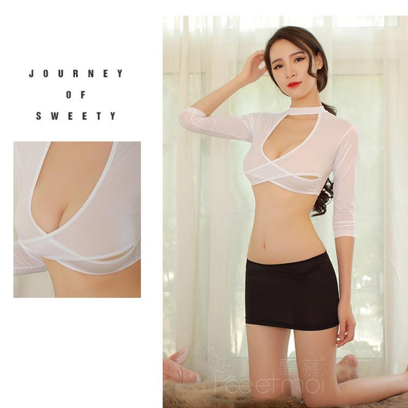 Sexy underwear uniform sexy tight body perspective hip skirt female secretary sexy uniform suit