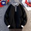 Men's Spring Autumn Pullover Lapel Fake Two-piece Knitted Sweater Base Shirt Casual Lapel Sweatshirt
