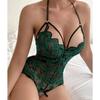 Crotchless See Through Sexy Lingerie Woman Green Lace Bodysuit Deep V Backless Porn Sexual Hollow Out Underwear Erotic Costumes