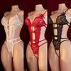 Erotic Sexy Lace Nightgown Crotchless Deep V Neck Open Bra Teddy Babydoll Sheer Sleepwear Elegant & Seductive Lingerie For Women