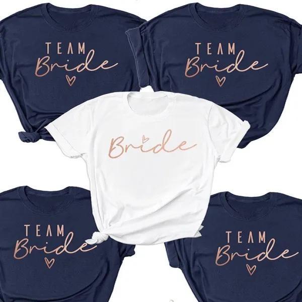 1Pcs Team Bride T Shirt Heart Bride Top Women Top Tee Wedding Short Sleeve For Bridal Shower Bridesmaid Gift