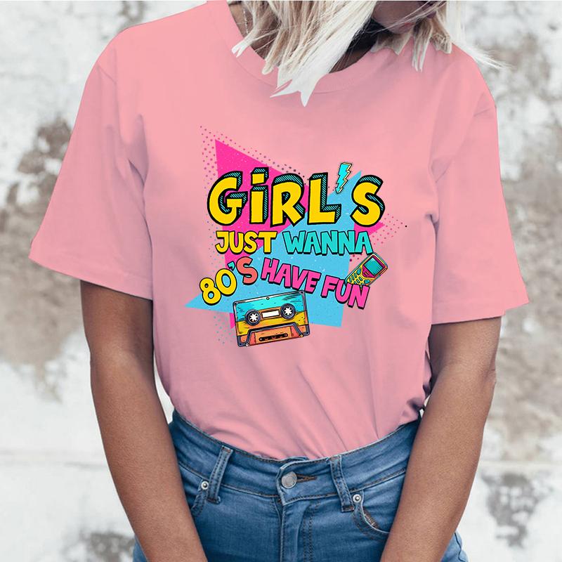 New Girl'S Just Wanna 80S Have Fun T Shirt Girl'S Just Wanna 80S Have Fun Print T-Shirt Female Summer Casual O-Neck Lady Tops