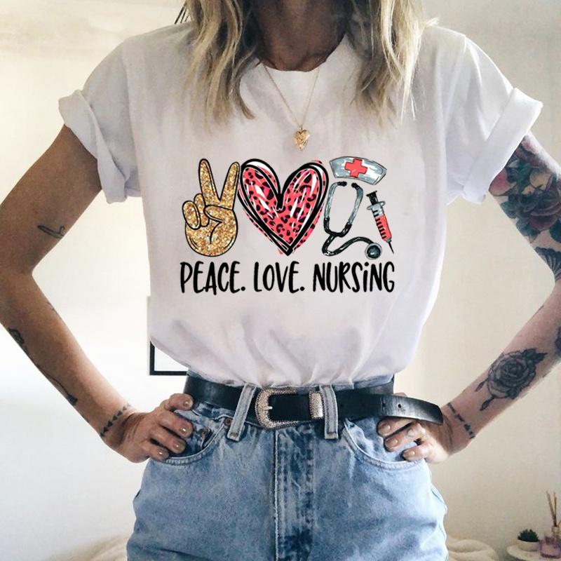 Peace Love Nursing Print T Shirt Women Cute Short Sleeve Tees Summer Fashion Loose Cotton T-shirt