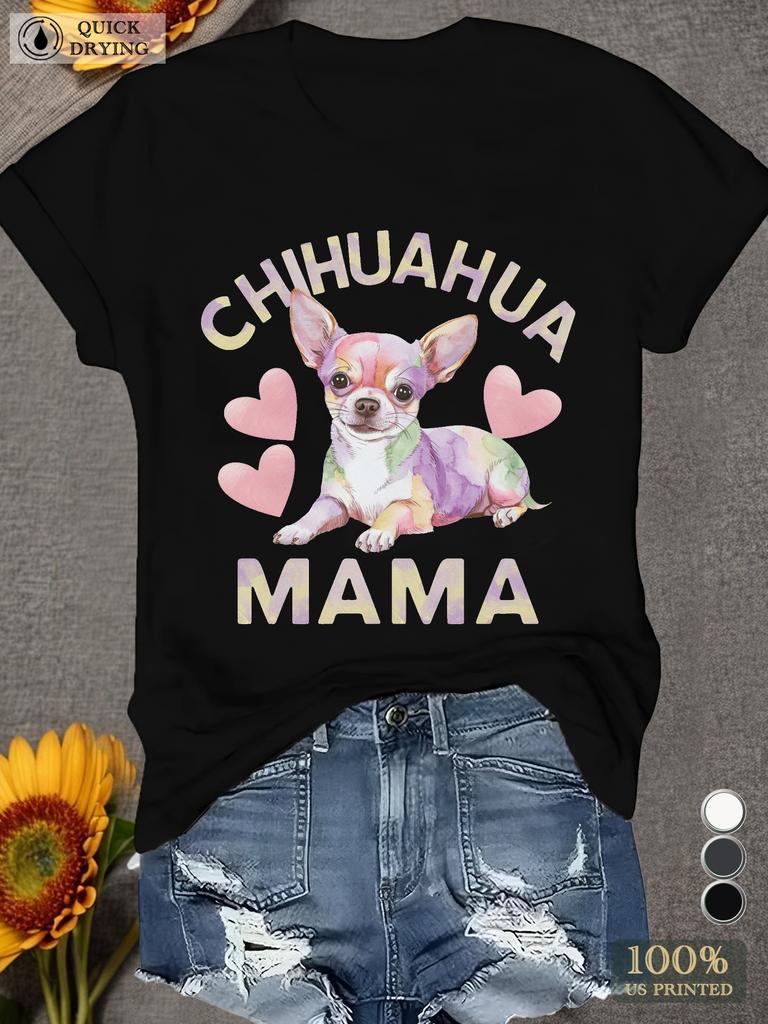 Women's Plus Size Chihuahua Mama Graphic Tee - Colorful Watercolor Dog Design Short Sleeve Round Neck y2k clothes