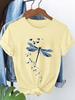 Women'S Casual Short-sleeved T-shirt Blue Dragonfly Floral Prin Round Neck Father'S Day Mother'S Day T-shirt Non-transparent