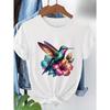 Tričko s krátkým rukávem s potiskem kolibříka jarní a letní ležérní top s kulatým výstřihem dámské oblečení dámské oblečení