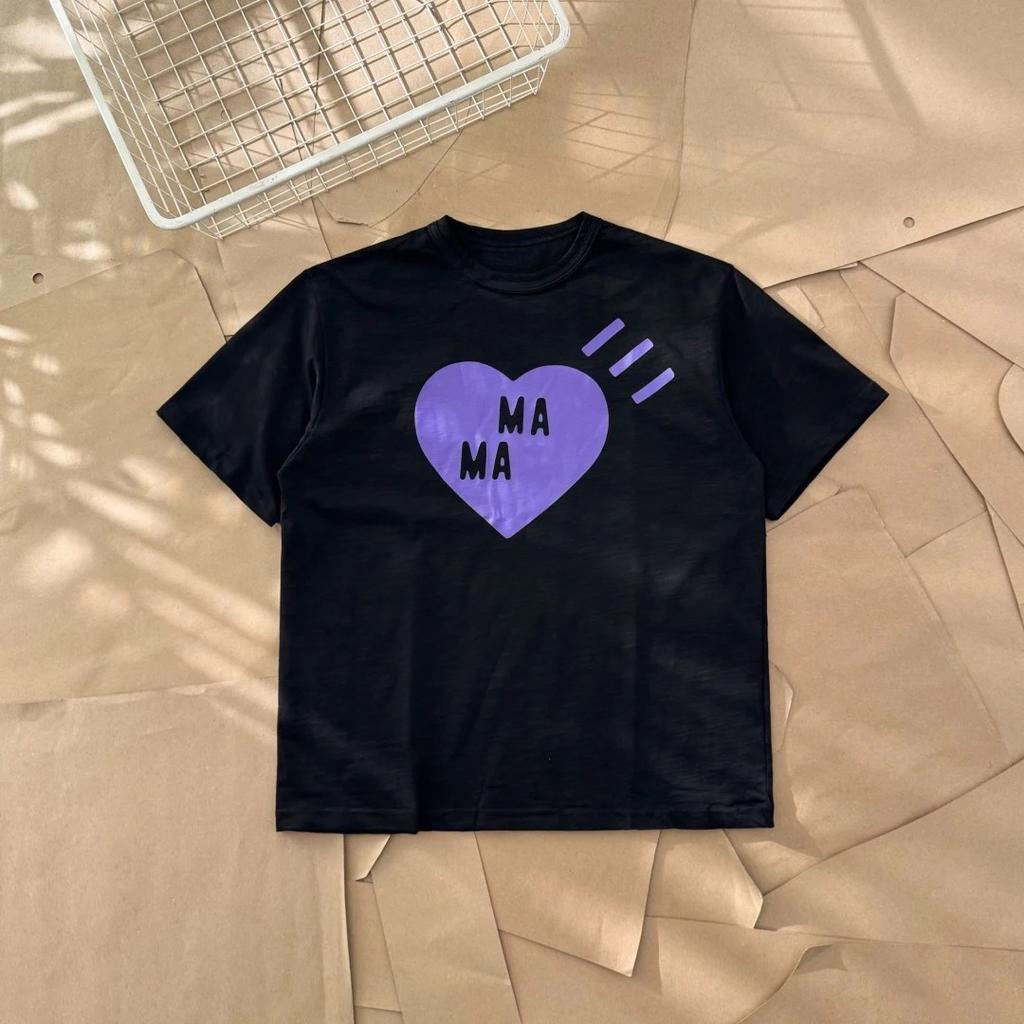 Japonské Sle 25SS Fialové Velké Srdce HM Písmeno Pár Krátká Košile T-irt Bambusová Bavlna Ležérní Rovný Střih Potištěné Topy