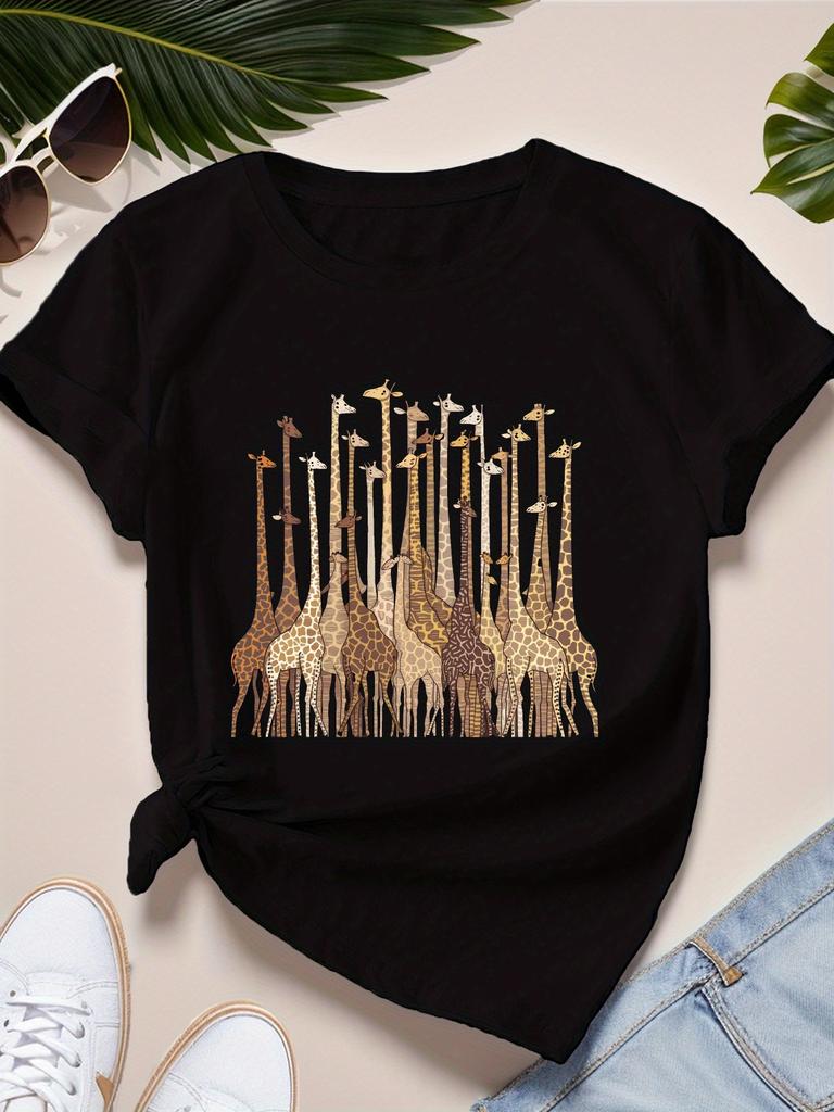 Tričko s abstraktními žirafami Módní ilustrace Tričko Vhodné pro denní volný čas A Pohodlný ležérní střih Módní pro ženy