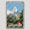 Switzerland Scenery Plaque Tin Sign Metal Poster Zurich Montreux Rigi Alps Metal Plates Retro Wall Decor Cafe Living Room Home