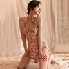 Sex underwear high-end split-ended sleeveless cheongsam retro breast-showing printing slim-fitting sex uniform