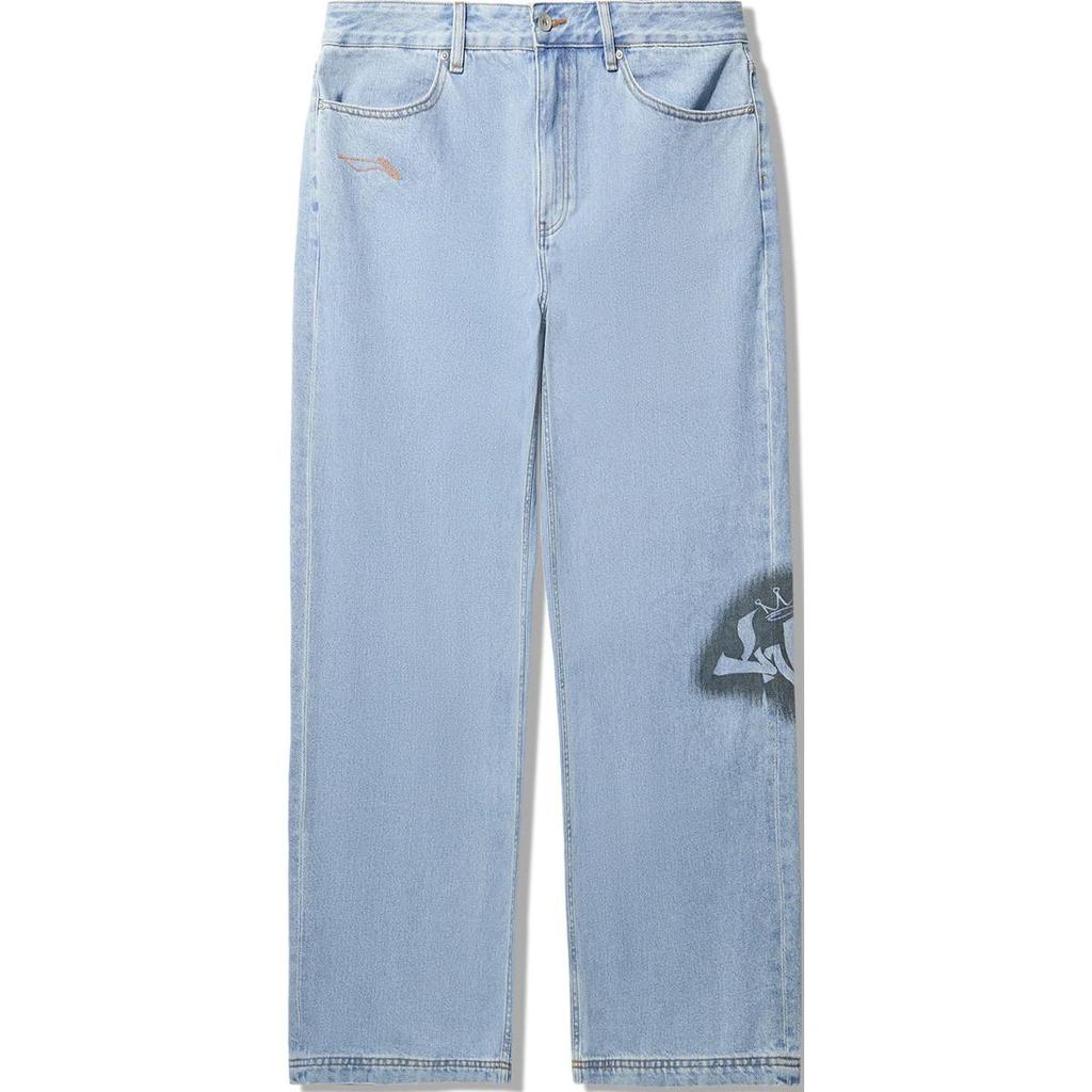 Li Ning Letter Mid Waist Breathable Versatile Loose Straight Leg Jeans Men jeans Light-Blue AJQU025-1