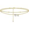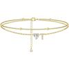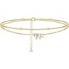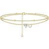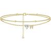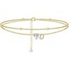 Ankle Bracelets for Women Waterproof 14K Gold Plated CZ Initial Dainty Layered Heart Anklets Foot Chain Summer Beach Jewelry