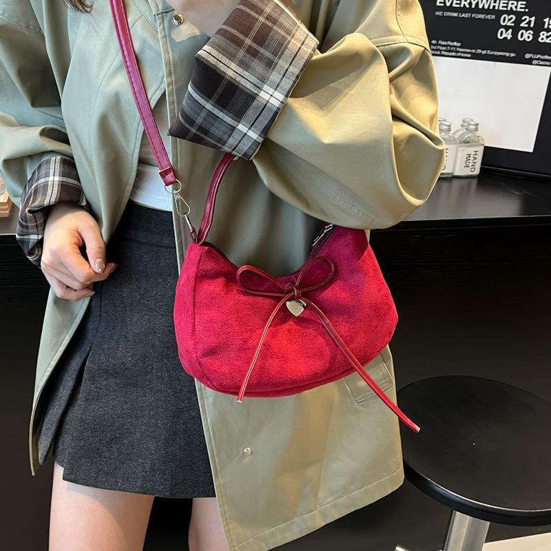 New bow handbag textured underarm bag women's autumn and winter portable shoulder bag casual messenger bag