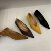 Korean version of versatile evening wind suede pointed single shoes women's 2025 new one-word with light mouth low heel thick heel commuter shoes