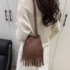 Niche design new women's bags spring and summer retro simple trend fringed single shoulder messenger bag vertical mobile phone bag