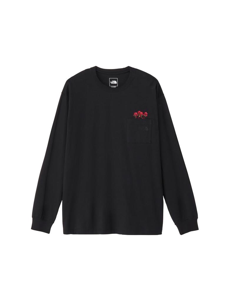 The North Face FD Flower Logo Size Long Sleeve Cut and Sew Size Tee, Black, M, T-Shirt, L/S