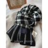 Pure Wool Blue Plaid Scarf Winter Thickened Warm Couple Scarf
