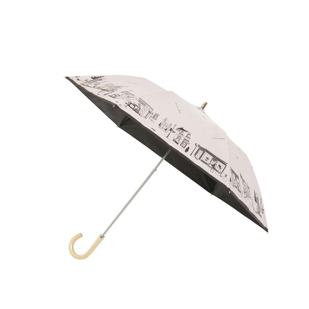 This artistic parasol beautifully depicts a Western cityscape in two colors. The elegant and beautiful print is complemented by luxurious details like a plain wood handle and gold parts, creating a premium design. It's made with premium blackout fabric, providing excellent sun protection and UV protection. It can be used in both sunny and rainy weather, so it can handle sudden changes in the weather. It also uses "FUWACOOL," a lightweight and cool fabric jointly developed by Moonbat and Teijin.