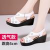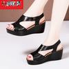 Real soft leather wedge heel sandals women's summer thick-soled fish mouth hollow waterproof table muffin soft-soled mother shoes Velcro