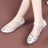 Round head soft sole mother shoes bag head hollow sandals spring autumn and summer word belt hollow women's leather shoes versatile single shoes