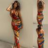 Striped Tie Dye Women Dress Camisole Sexy Backless Hollow Out High Waist Women Long Dress Party Office Women Dress Summer 2021